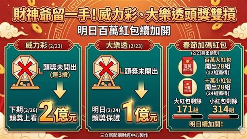 👉 扣掉這些固定獎金後,剩下的會依照比例分配給頭獎89%、貳獎11%,頭獎的保底金額為2億元。